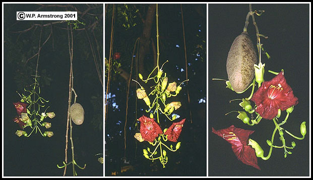 شکل کلی آنها شبیه زنگ است. رنگ گلها نارنجی تا سبز مایل به قرمز یا سبز مایل به بنفش هستند و قطر 10 سانتی متر دارند. میوه ها چوبی بوده و از 30 تا 100 سانتی متر طول دارند. حدوداً 5 تا 10 کیلو گرم وزن دارند.