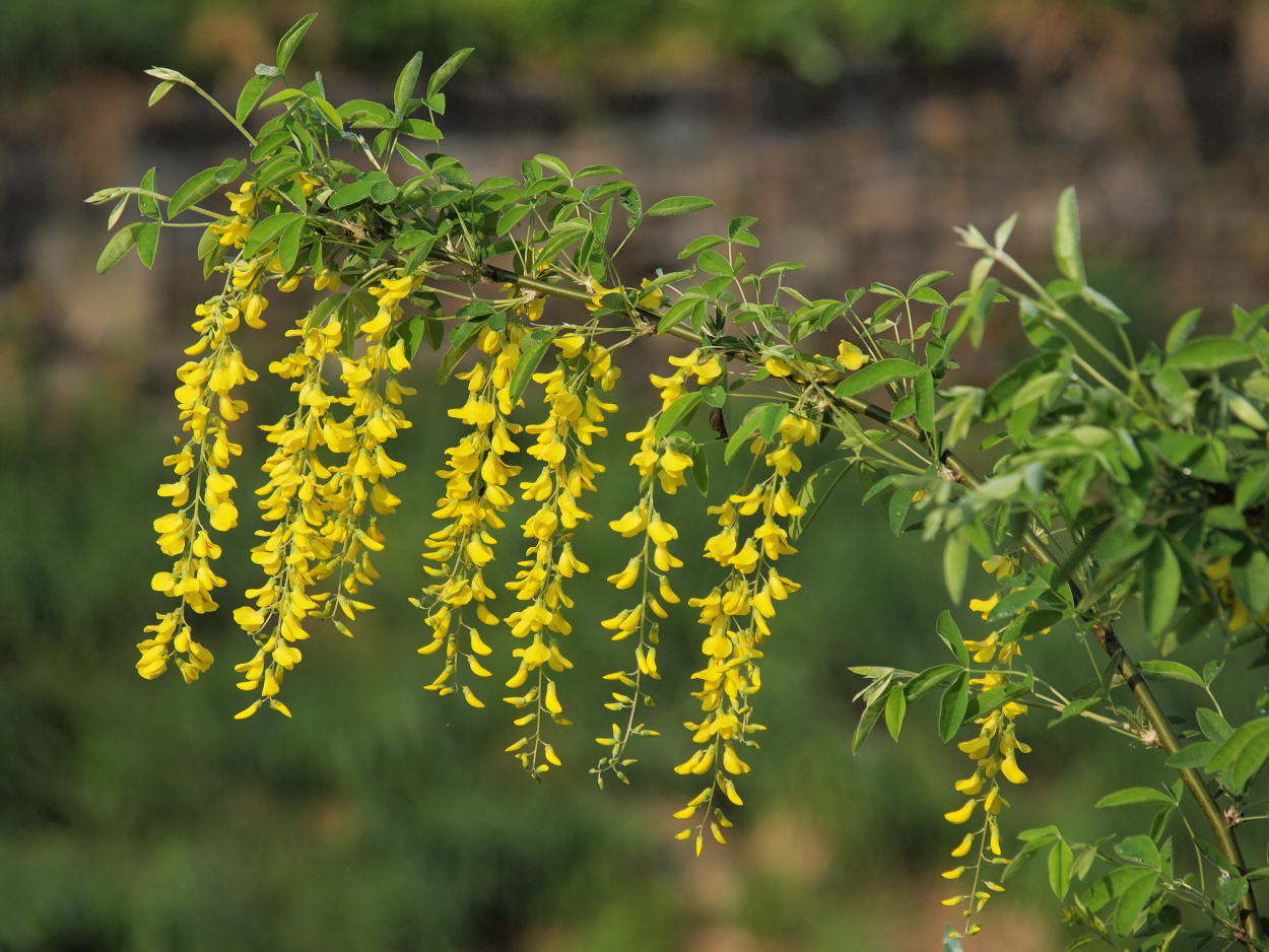 Laburnum Anagyroides درختچهای بزرگ يا درختی به ارتفاع 7 متر بومی مناطق کوهستانی جنوب اروپا، دارای تاج عموماً كروی تا مخروطی، با شاخههای ايستاده، با پوست سبز مايل به خاكستری و خزان كننده میباشد.