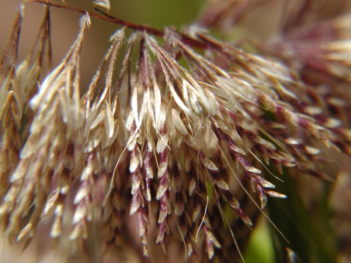 گل ها به صورت سنبله و به طول دو تا شش سانتیمتر و پهنای یک تا دو و نیم سانتیمتر می باشند. این گل ها به رنگ زرد طلایی بوده که در برخی موارد نیز به رنگ ارغوانی دیده می شوند. سنبلچه ها در گروه های دو تا پنج تایی در انتهای شاخه ها ظاهر می شود. هر سنبلچه نازا به طول پنج تا هشت میلیمتر و به صورت خطی – نیزه ای است. سنبلچه های زایا به طول دو تا سه میلیمتر و دارای دو دندانه است.