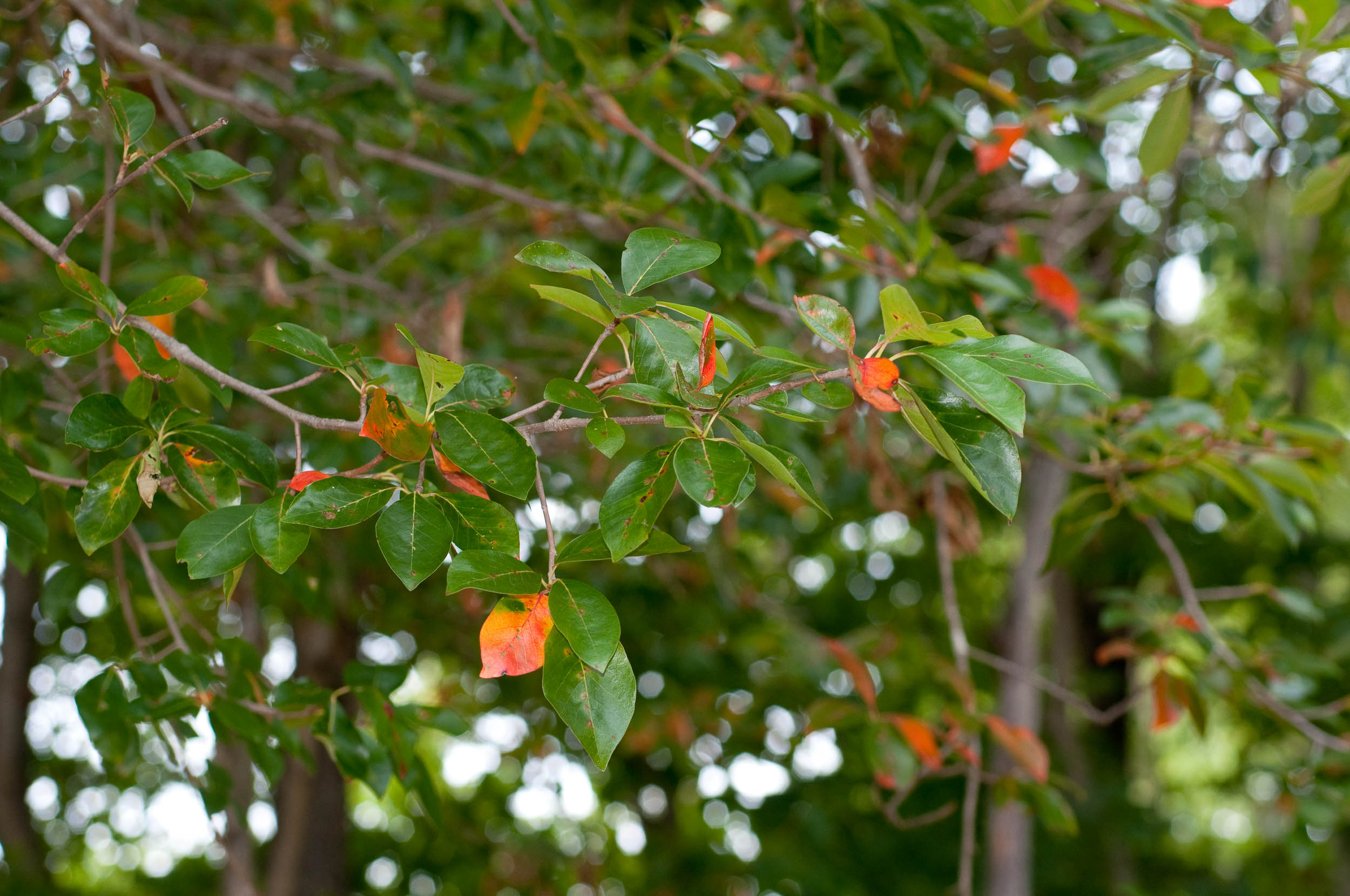 برگها ساده، متناوب و بیگوشوارک هستند و عمدتاً شکلی بیضوی تا واژتخممرغی دارند. طول برگها معمولاً ۵ تا ۱۲ سانتیمتر و عرض آنها ۳ تا ۶ سانتیمتر است. حاشیه برگها صاف (بدون دندانه) و نوک برگ اغلب تیز یا کمی کشیده است. سطح فوقانی برگها سبز تیره، براق و سطح زیرین کمرنگتر است. در پاییز، برگها طیفی زیبا از زرد، نارنجی، قرمز تا ارغوانی تیره ایجاد میکنند که از جذابترین ویژگیهای ظاهری این درخت است.