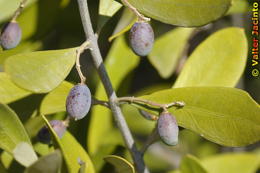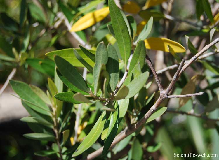 درخت زیتون همیشه سبز بوده و دارای برگهایی کوچک و یکپارچه هستند که بصورت متقابل قرار گرفتهاند.