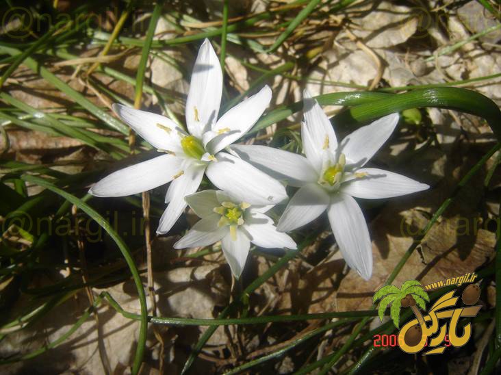 این گیاه از پیاز کوچک رشد میکند و معمولاً قامت کوتاهی دارد؛ برگها غالباً باریک و قاعدهایاند و گلها بهصورت چندتایی روی ساقهٔ گلدهنده ظاهر میشوند. گلها در Ornithogalum اغلب سفید با رگههای سبز در سطح بیرونی کاسبرگ/گلبرگها هستند؛ هرچند شدت و الگوی رنگ میتواند درونگونهای تغییر کند. ترکیب گلهای ستارهای و اندام زیرزمینی پیازی از شاخصترین نشانههای شناسایی این جنس است.