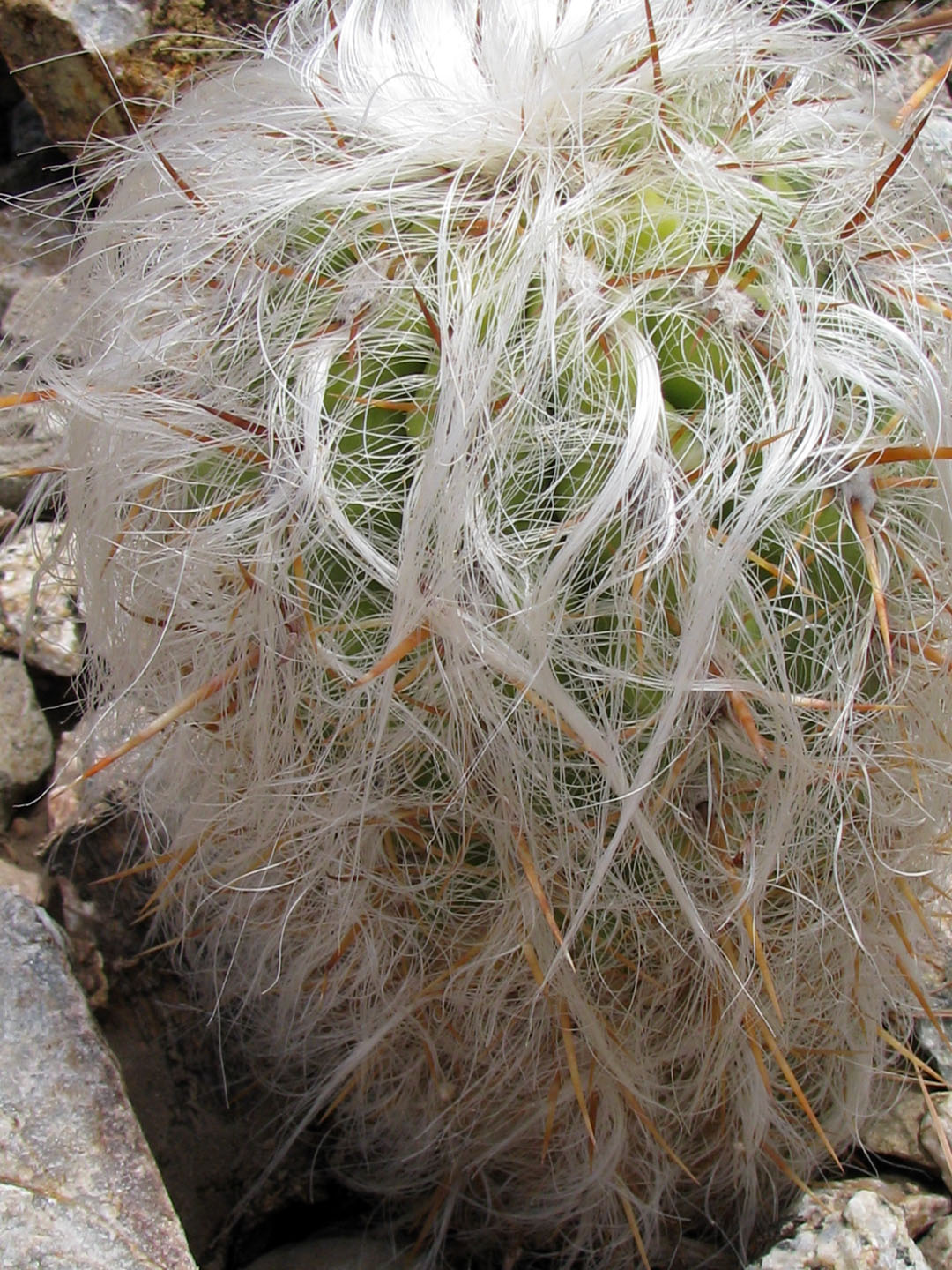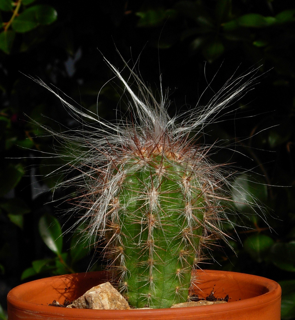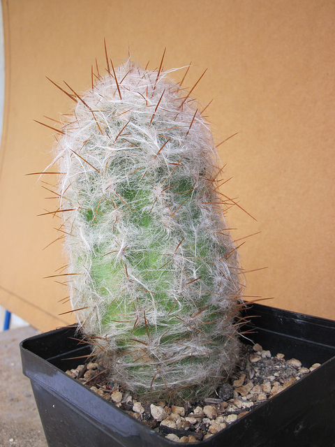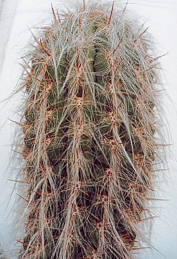 خار های تیز این کاکتوس در درون موهای سفید فراوان آن پنهان است.