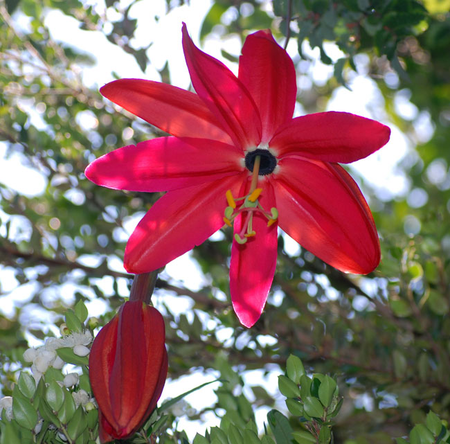 این گیاه، گیاهی بالارونده با گل های بسیار زیبا است. و یکی از گونه های کمیاب جنس گل ساعتی در جنگل های بارانی و خنک کلمبیا محسوب می شود. همچنین دارای گل های بزرگ است. گل ها به رنگ صورتی مایل به قرمز و به صورت آویزان روی ساقه های طویلی به طول حدود 2 فوت تشکیل می شوند. این گل ها حدود 5 اینچ قطر داشته و در زمستان و تابستان تشکیل می شوند. بساک گل به رنگ نارنجی، خامه به رنگ سبز مایل به زرد لیمویی و میله پرچم نیز به رنگ ارغوانی می باشد. هر گل می تواند حدود 3 تا 4 روز شکوفا باقی بماند و گرده افشانی گل ها نیز توسط پرندگان کوچک و شهدخوار صورت می گیرد.
