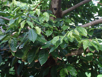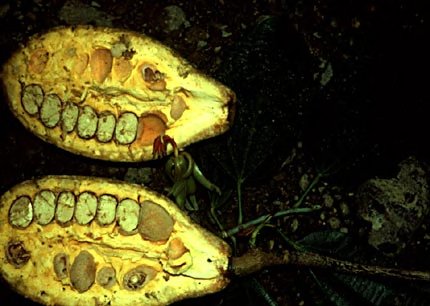 میوه های این گیاه نیز مشابه ساپوت آمریکایی و حتی از نظر کیفیت بهتر نیز می باشد. این میوه ها بیش از 25 سانتیمتر طول و حدود 10 سانتیمتر نیز عرض داشته و دارای پوستی به رنگ زرد و گوشتی شیرین و به رنگ کِرِم می باشد.