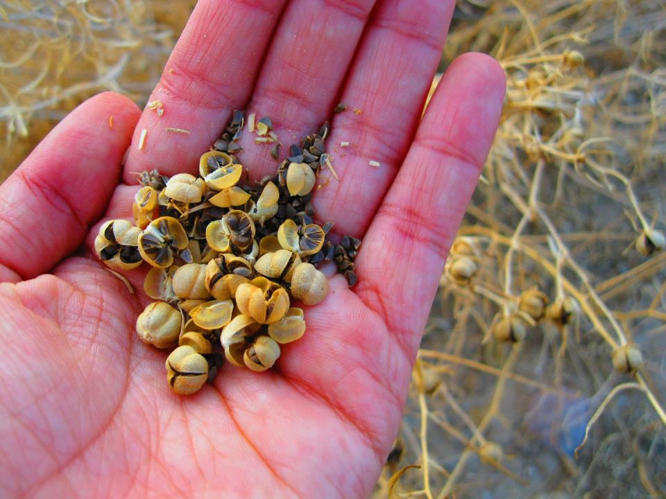 کپسول های حاوی تخم براحتی قابل برداشت هستند . بهتر است پس از برداشت در زیر نور آفتاب خشک شوند . برداشت ریشه در فصل پاییز صورت می گیرد . ریشه و دانه این گیاه قدرت ضد میکروبی محیط و هوا را دارا می باشد .