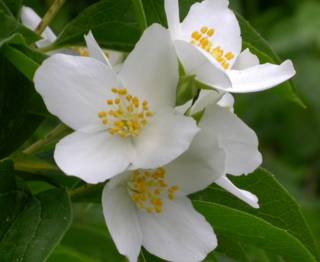 گل ها به صورت خوشه ای و در انتهای ساقه های طویل ظاهر می شوند. هر گل دارای چهار گلبرگ سفید رنگ است که حدود چهار سانتیمتر نیز طول دارد و دارای پرچم های متعددی به رنگ زرد می باشد. در زمان گلدهی، درختچه ها با تعداد زیادی گل های سفید رنگ پوشیده می شوند. گل ها دارای عطری بسیار قوی مشابه عطر شکوفه های بهارنارنج می باشند.