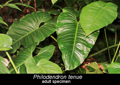 Philodendron tenue گل شیپوری پیچی امریکا قادر به تولید چهار گل آذین در بر روی ساقه اصلی است که هر کدام بین 2 تا 11 سانتی متر بلندی دارند.