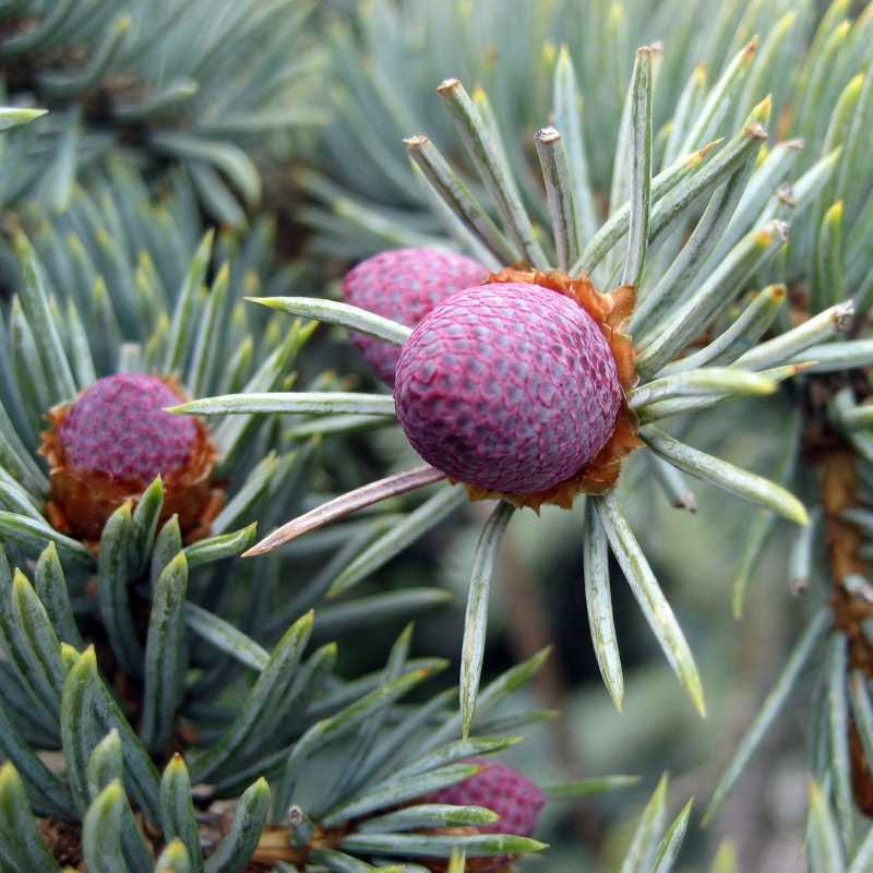 میوه ها بیضی شکل ، دراز و مخرطی هستند  و بر روی شاخه های کوتاه قرار دارند.