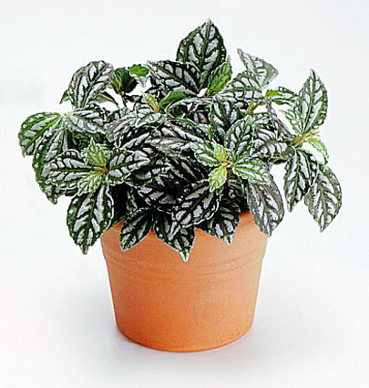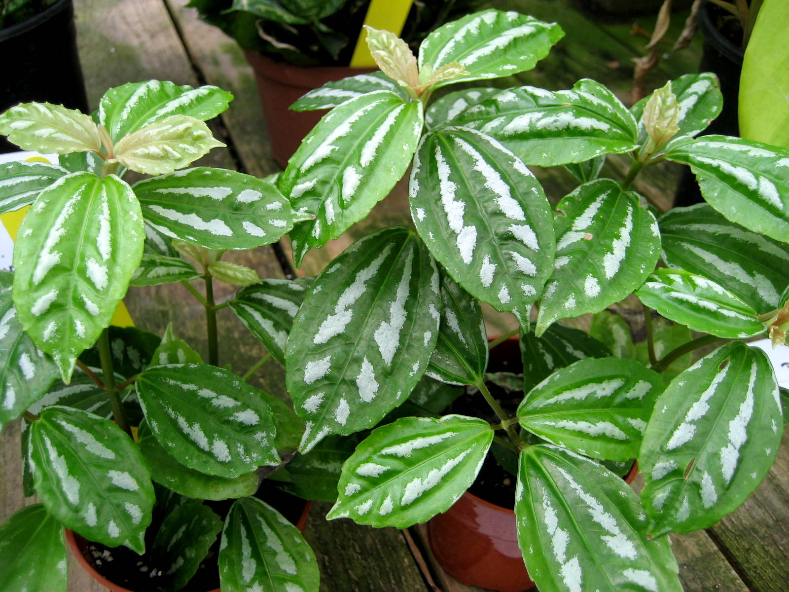 این گیاه برگهایی متوسط به رنگ سبز تیره و بیضی شکل دارد که هر برگ شامل نقوش نقره ای رنگی می باشد و علت نامگذاری این گیاه به Aluminium plant( گیاه آلومینیومی) نیز ،همین رنگ برگها است.