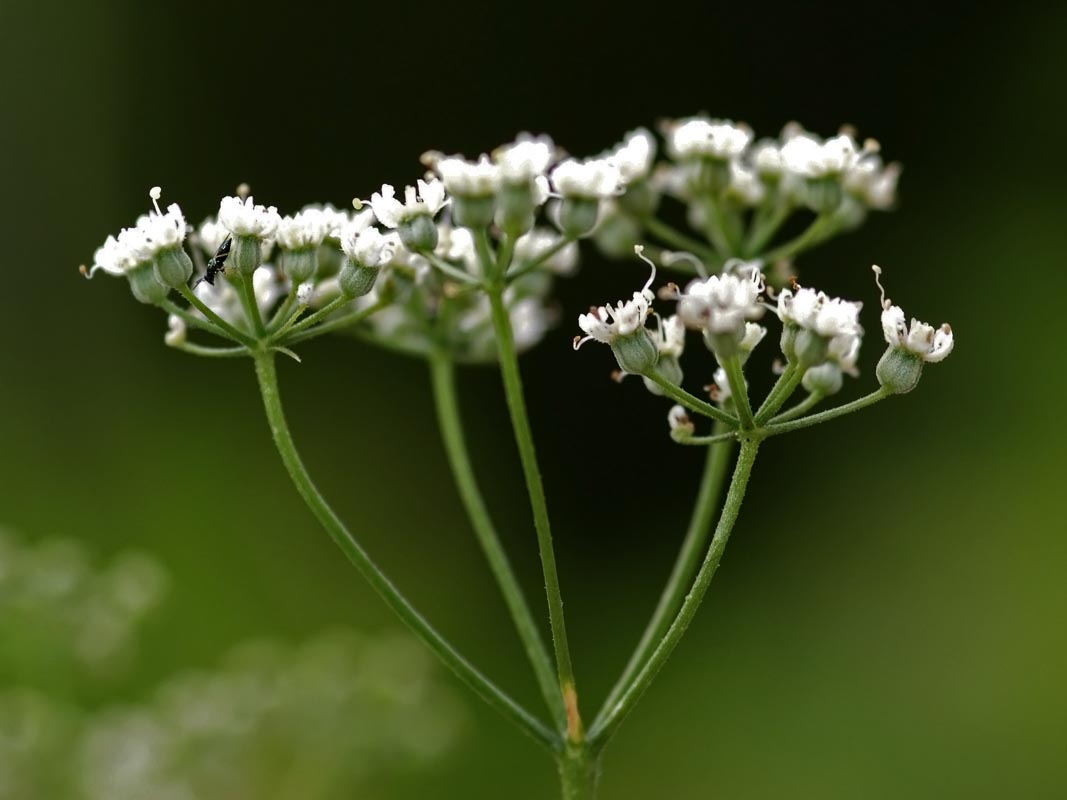 گلهای کوچک و سفید رنگ آن مجموعاً به صورت چتر مرکب مجتمع می گردد. گلدهی از جولای تا آگوست و فصل تولید بذرها از آگوست تا سپتامبر است. بذر آن کوچک، بیضوی یا گلابی شکل، به طول 3 تا 4 سانتی متر، به عرض 5/1 تا2 میلی متر و به رنگ سبز مایل به خاکستری یا زرد مایل به سبز است. بر روی میوه آن 5 خط طولی مشخص دیده می شود. تارهای ریز و فراوانی نیز همه قسمتهای میوه آنرا فرا گرفته است.