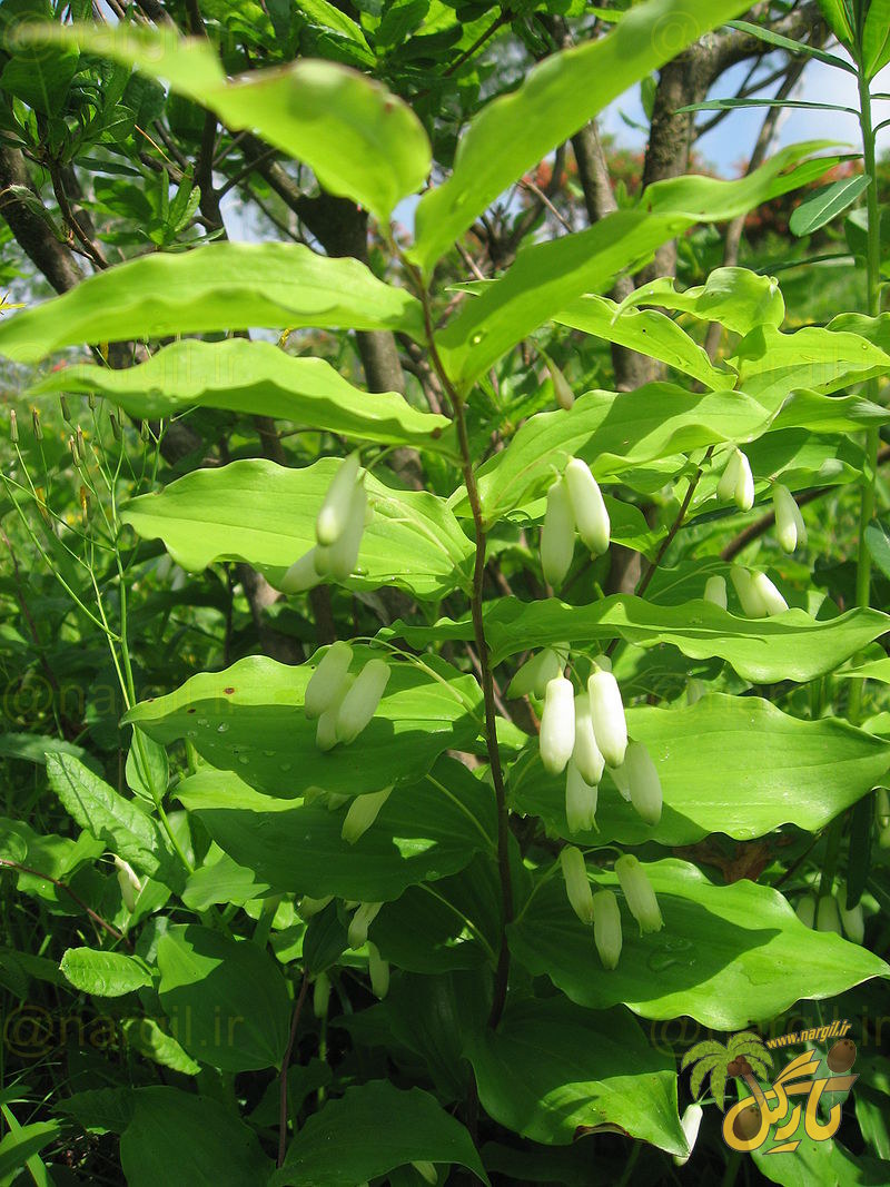 قسمت زیرزمینی این گیاه شامل یک ریزوم افقی بلند و گوشت دار است که اثر زخم شدن ساقه های به وود آمده از سالیان قبل روی آن مشخص است. ساقه کاملا رشد نموده این گیاه دارای برگ های متناوب یا فراهم است و گل ها به تعداد 1 تا 4 عدد در زاویه بین برگ و ساقه ظاهر می شوند که لوله ای و آویزان بوده و غالبا سفید رنگ هستند. میوه رسیده این گیاه دارای ند دانه است. فصل گلدهی آنها اردیبهشت تا خرداد است.