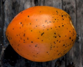 این درخت دارای میوه های گرد و در اندازه های متوسط (حدود 3 تا 4 اینچ)، با پوستی زرد رنگ می باشد. این میوه ها شباهت زیادی به میوه انبه دارند. گوشت میوه زرد-پرتقالی، معطر و با مزه ای بسیار دلپذیر است.