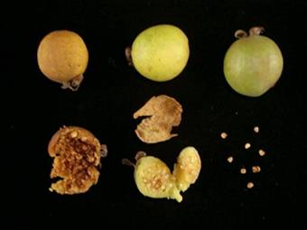 میوه گرد است و قطری حدود 2.5 سانتیمتر دارد.