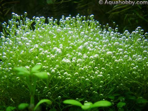 چنانچه به تانک این گیاه، گاز Co2 تزریق نمایند، کود دهی اش مناسب باشد و نور زیادی به آن تابانده شود، حباب های بی شماری تولید خواهد کرد. با اینکه در اصل یک گیاه شناور است اما چنانچه روی سنگ یا چوب نصبش کنید و از آن به عنوان یک گیاه مفروش کننده در تانکتان استفاده نمایید، ظاهر زیبایی به آکواریوم گیاهی شما خواهد بخشید.