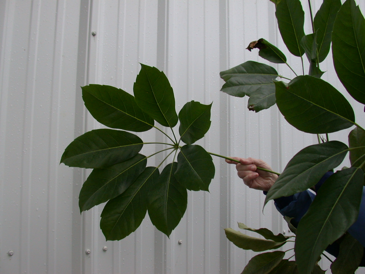 ساقه های دراز ومنحرف شفلرا در اثر هوای خیلی گرم به وجود می آید. گلدان را به محل خنکتری ببرید اما غبار پاشی نکنید. تشنگی مفرط می تواند گیاه را پژمرده و برگها را آویزان کند.