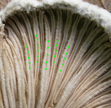 گیل ها به رنگ قرمز کم رنگ یا خاکستری، با لبه هایی که از طول جدا هستند و در صورت مرطوب شدن بسته می شوند، می باشند.