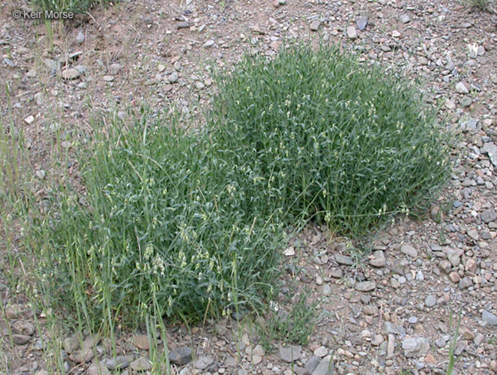 این گیاه، گیاهی علفی و چندساله است که حدود 60 سانتیمتر طول دارد. گل ها از ماه جون تا آگست تشکیل شده و بذرها از جولای تا سپتامبر می رسند. گل های این گیاهان دوپایه (اندام های جنسی نر و ماده به صورت جدا از هم و روی گیاهان جداگانه ای قرار دارند) بوده و گرده افشانی توسط زنبورهای عسل صورت می گیرد. این گل ها خودگرده افشان نیستند. گل ها دارای پنج گلبرگ، با دو لوب عمیق به رنگ سفید و زیگومورف هستند. برگ ها متقابل، بدون دمبرگ، نیزه ای و کشیده و به رنگ سبز مایل به آبی می باشد. میوه ها کروی شکل، به رنگ مایل به زرد، کپسولی با شش دندانه و به طول 8 تا 9 میلیمتر هستند.