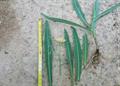 گیاه چندساله به ارتفاع 90 سانتیمتر می باشد.ساقه افراشته، منفرد، شیاردار، بدون انشعاب دارای ریزوم های به شدت رونده و تکثیر شونده می باشد. برگ هایی بی کرک، گاهی با کرک های فرخورده پراکنده روی سطح پشتی، نوک کند یا تیز، برگ های قاعده ای به طول 5 تا 30 و به عرض 0.5 تا 3.5 سانتیمتر، خطی یا مستطیلی خطی، در قاعده باریک شونده، در حاشیه با دندانه های سینوسی واگرا، دندانه اره ای ریز و بدون گوشک می باشد. برگ های ساقه ای طول تا 25 و عرض تا 3 سانتیمتر می باشد.