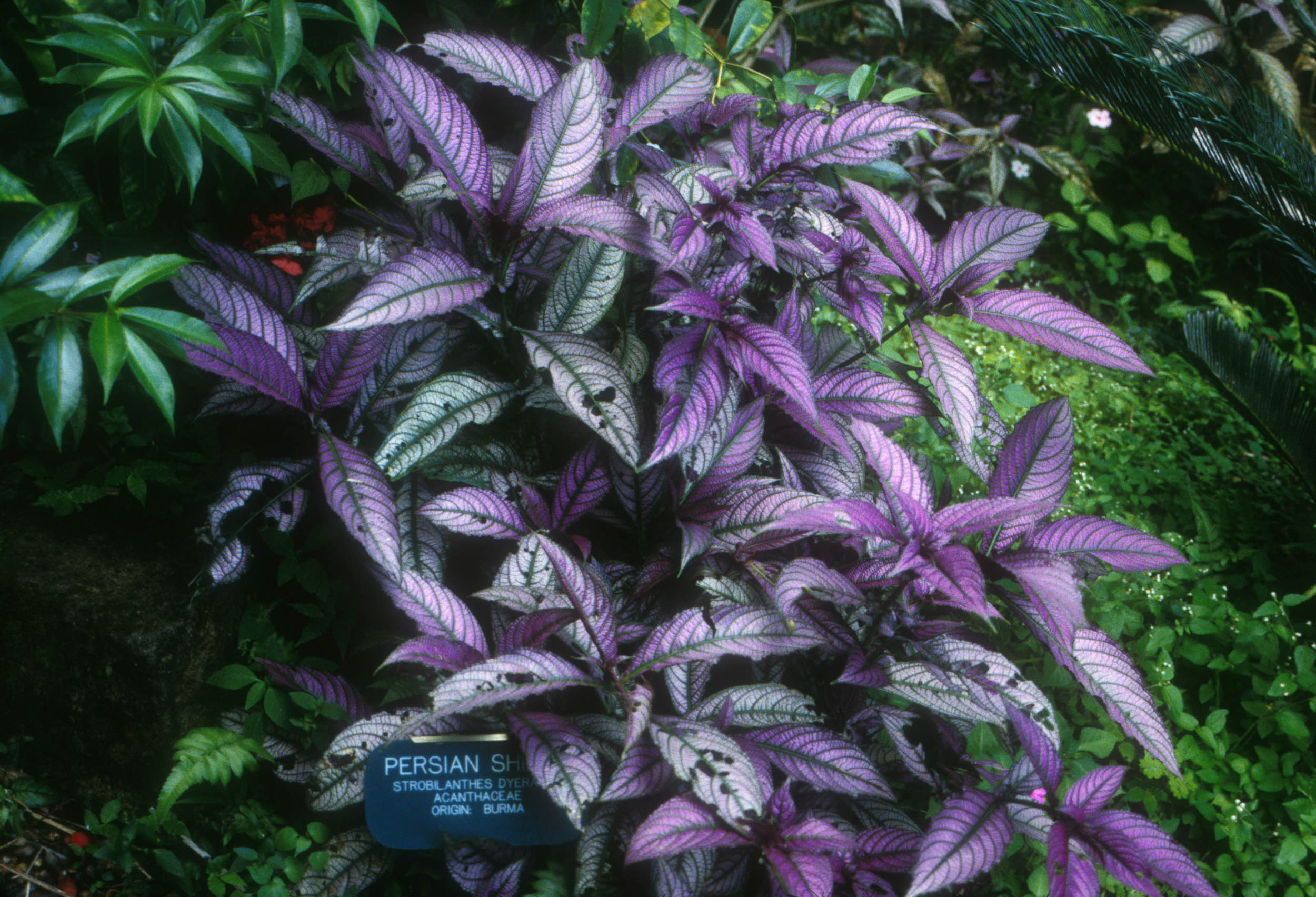 Strobilanthes dyerianuspersian shield که به فارسی سپر فارسی نامیده میشود، گیاهی از خانواده آکانتاسه بومی مناطق گرمسیری آسیا و ماداگاسکار می باشد. نیاز های این گیاه عبارتند از نور: متوسط رطوبت: مرطوب درجه حرارت: دمای بین 21 تا 28 درجه درجه سانتیگراد خاک: خاک شنی، ماسه ای، غنی ، مرطوب و خوب زهکشی شده