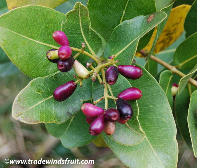 "واتر بِری" درختی آبدوست و همیشه سبز از خانواده مورد (Myrtaceae) است که حدود 8 تا 15 متر نیز ارتفاع دارد. این درخت اغلب در نزدیک نهرها، حاشیه ی جنگل ها و مکان های باتلاقی یافت می شود. برگ های آن بیضوی تا مدور، در سطح رویی به رنگ سبز مایل به آبی و در سطح زیرین به رنگ سبز کمرنگ می باشد. برگ های جوان نیز به رنگ مایل به قرمز دیده می شوند. گل ها معطر، به رنگ سفید تا صورتی بوده که به صورت انتهایی روی شاخه ها تشکیل می شوند و دارای پرچم های متعدد کرکی می باشند و شهد فراوانی نیز تولید می کنند. این گل ها از آگست تا نوامبر تشکیل می شوند. میوه های این درختان به صورت سته ای، تخم مرغی شکل، به رنگ قرمز تا ارغوانی تیره (در زمان رسیدن کامل) دیده می شوند. هر میوه می تواند بیش از 25 میلیمتر طول داشته باشد. در نواحی بومی، میوه های این گیاه را از روی درختان خودرو جمع آوری کرده و به مصرف خوراکی می رسانند. در برخی موارد نیز از این گیاهان به دلیل تولید گل ها و میوه های زیبا به عنوان گیاهی زینتی استفاده می شود. این گیاهان بومی آفریقای مرکزی و جنوبی می باشند.