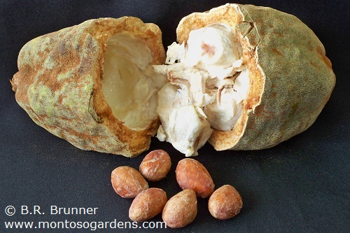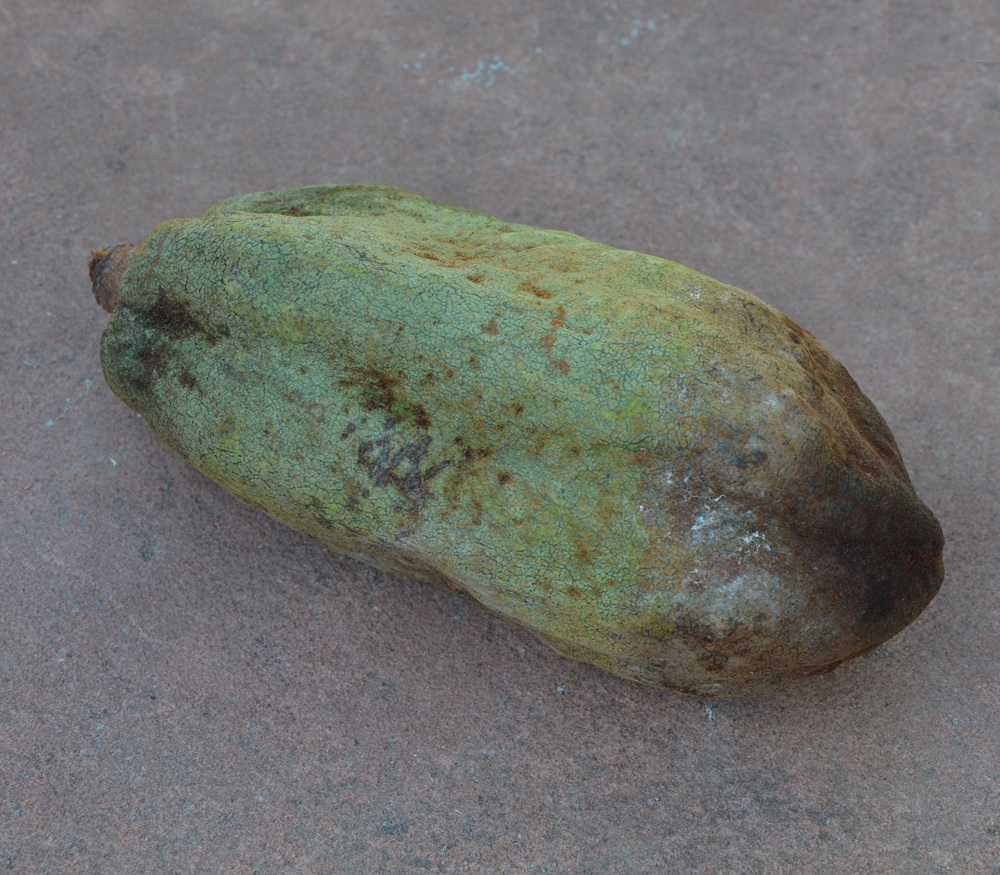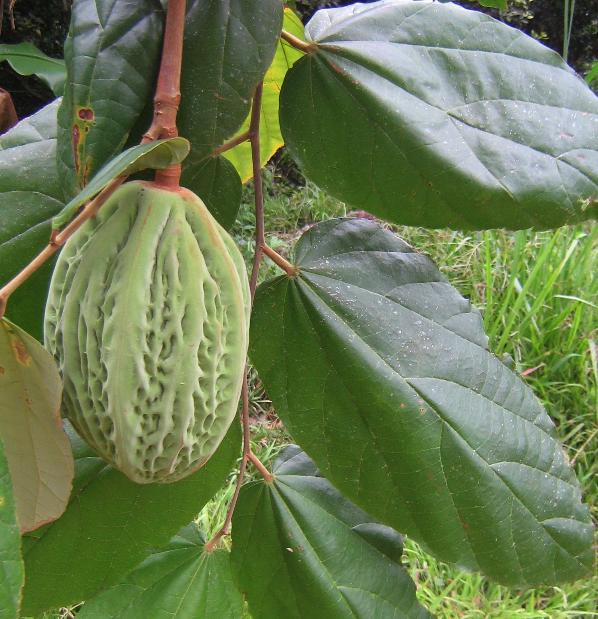 میوه های این گیاهان کشیده به طول 10 تا 18 سانتیمتر و قطر 6 تا 9 سانتیمتر هستند. این میوه های طویل دارای پنج شیار برآمده، منظم و جدا از هم می باشند. میوه ها در ابتدا به رنگ سبز و به مرور زمان به رنگ قهوه ای دیده می شوند. هر میوه ها حاوی 20 تا 25 بذر است. بذور به وسیله پالپی کرم رنگ، معطر و ترش احاطه شده اند.