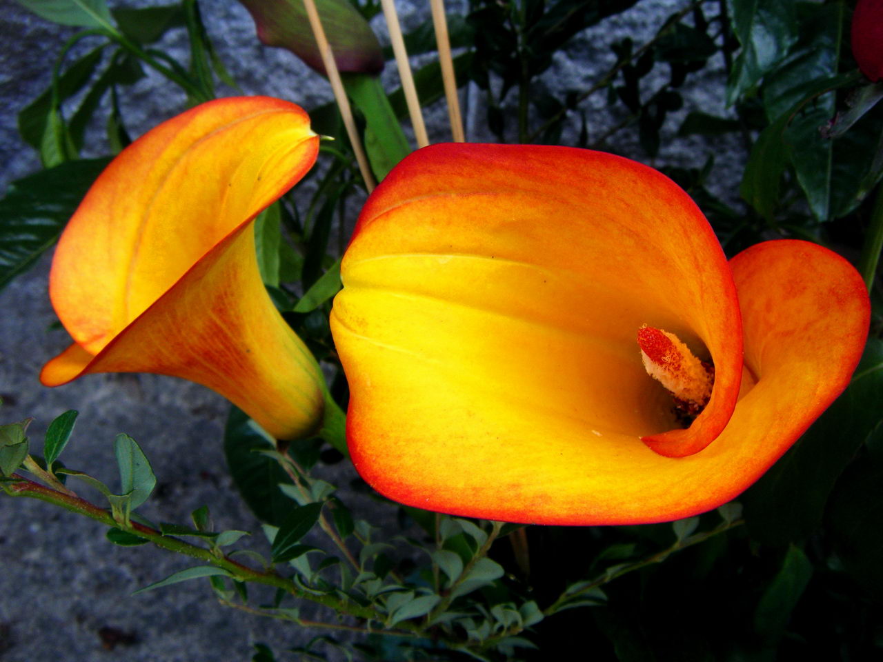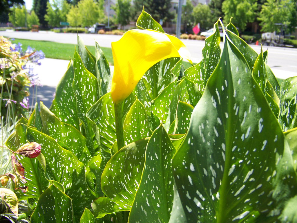 گیاه گل شیپوری زرد چند ساله و متعلق به خانواده ی آراسه است. این گیاه دارای ریزوم ضخیم و گوشتی و برگ های بزرگ و چرمی شکل است. گل های آن به شکل شیپورهای زرد هستند و در اواخر بهار و تابستان به گل می نشیند. این گیاه همیشه سبز است و گاهی بر روی برگ های آن خال های سفیدی دیده می شود.