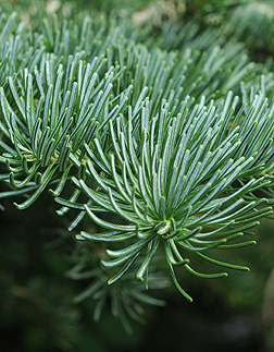برگ ها کوتاه، شق و سوزنی شکل و نوک تیز بوده، 2 تا 6.5 سانتیمتر طول داشته و به صورت متراکم شاخه ها را می پوشانند.