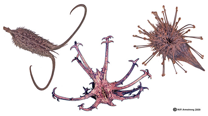 میوهٔ این گیاه دارای زوائد قلابمانند است که به پشم یا اندام جانوران میچسبد و به پراکنش بذر کمک میکند. همین ساختار قلابی مبنای نام رایج «پنجه شیطان» است و از دیدگاه بومشناسی، نمونهای از همپراکنشی با جانوران به شمار میآید.