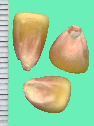 دانه ذرت به رنگ سفید، زرد یا مخلوطی از این دو یافت می شود. خوراک هایی که با ذرت سفید تهیه می شوند، معمولاً مرغوب ترند. دانه ذرت دارای سه بخش آندوسپرم، گیاهک و پریکارپ است. پروتئین موجود در دانه به عوامل مختلفی از جمله محیط، نوع گیاه و شرایط کشت و زراعت بستگی دارد و بین 8 تا 15 درصد متغیر است. پروتئین عمده ذرت زئین می باشد نقش مهمی در تغذیه انسان ایفا می کنند.