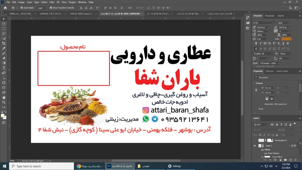 | نام واحد | عطاری باران شفا زینتی |