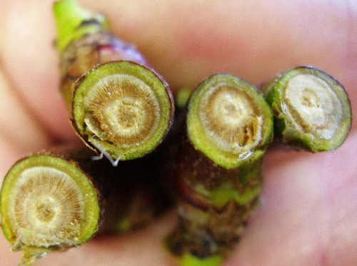 بریده شده از گیاه آلوده به بیماری قارچی پژمردگی ورتیسیلیومی