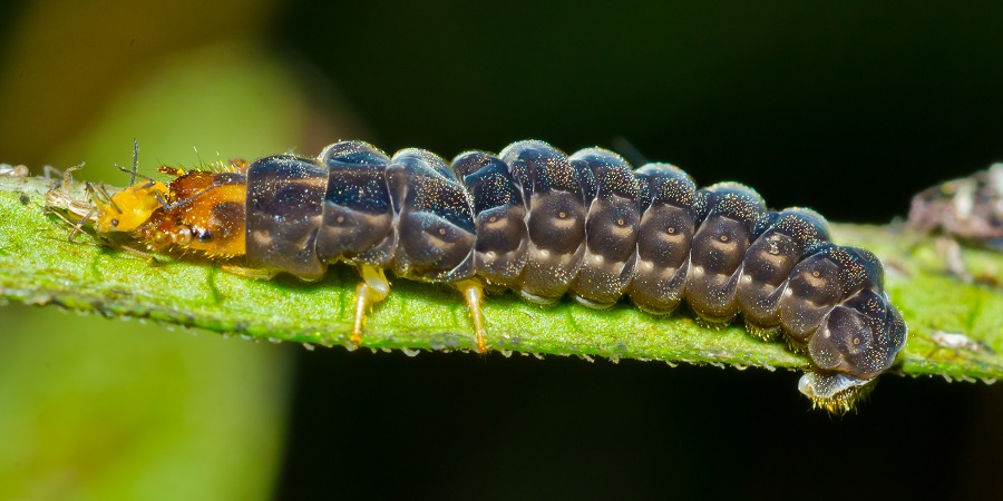 لاروها از تخم بیرون می آیند، در خاک باقی مانده و از تخمها و لاروهای حشرات آفت،