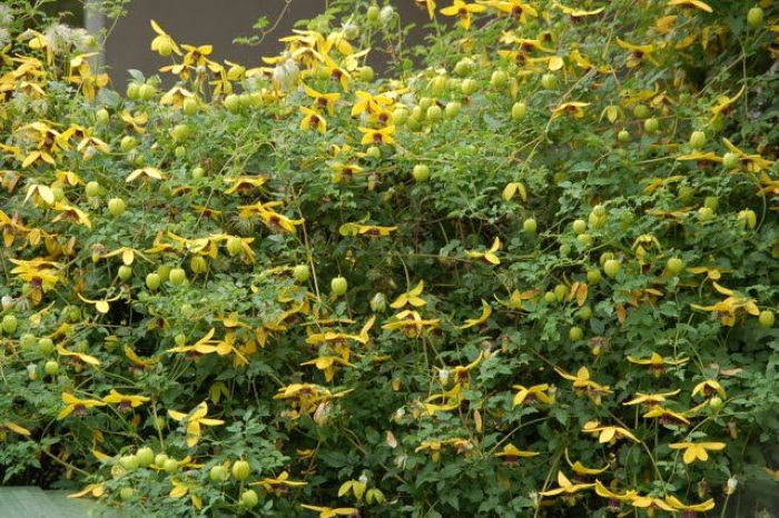 ) گل دهی خود را از اواخر تابستان آغاز کرده و گل هایی خوش و به رنگ کرمی رنگ تولید می کند. این گیاه سرعت رشد بالایی دارد و می تواند تا ارتفاع 6-7 متر هم رشد کند. کلماتیس طلایی (