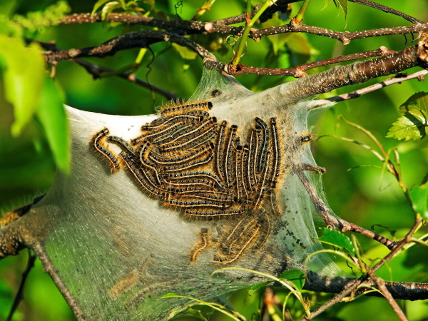 کرم های پیله ساز که اغلب لارو پروانه ها و شب پره ها هستند به دلیل تغذیه از برگ، ساقه یا میوه به درخت آسیب وارد می کنند.