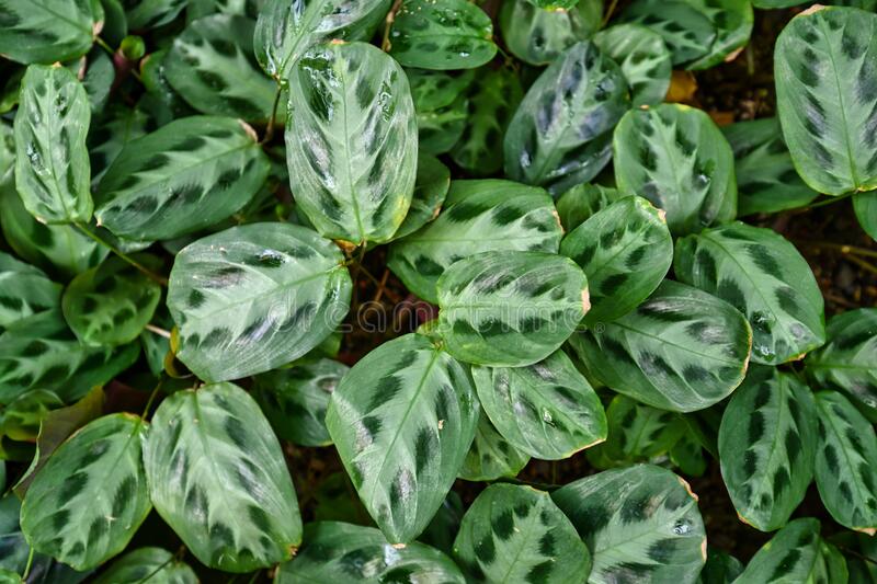از گیاهان مارانتا دارای برگ های قابل توجه و سه رنگ هستند. شاخ و برگ آن به رنگ