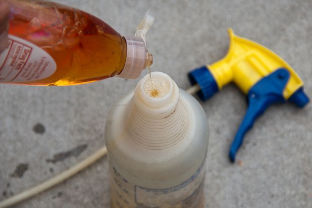 لکه های ریز متحرک به نظر می رسند. یک بطری اسپری را با محلول آب و شوینده پر کنید