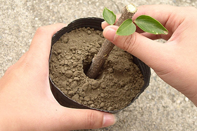 خشبی را برای ریشه دار کردن در خاک می زنند. به بستر کاشت قلمه ها می توان موادی