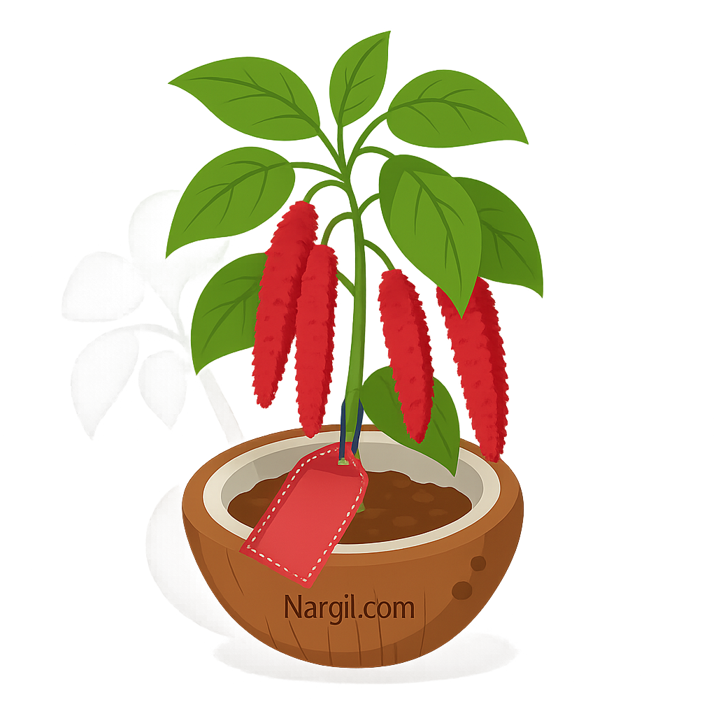 گیاهیست که زادگاهش "انسولیند"واقع در آسیای جنوب شرقی است و جنبه تزئینی آن بخاطر خوشه های گل زرشکی رنگ آنست. اما توجه برطوبت محیط و آب دادن بدان ضروریست و در زمستان به آب کمتری نیاز دارد