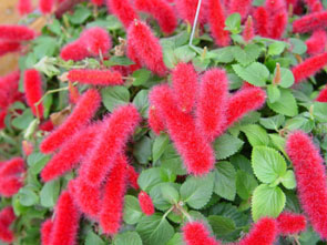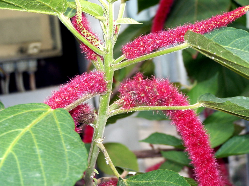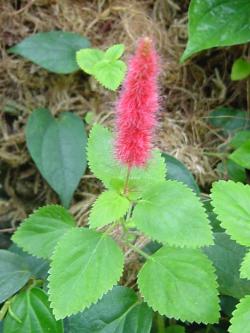 در آکالیفا هیسپیدا برگها طويل ، بيضوي و به رنگ سبز تيره می باشد