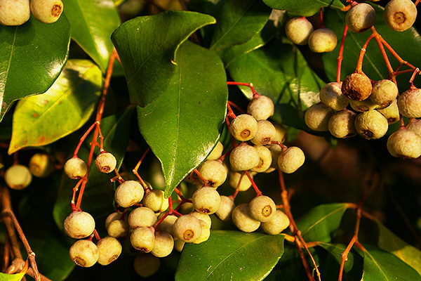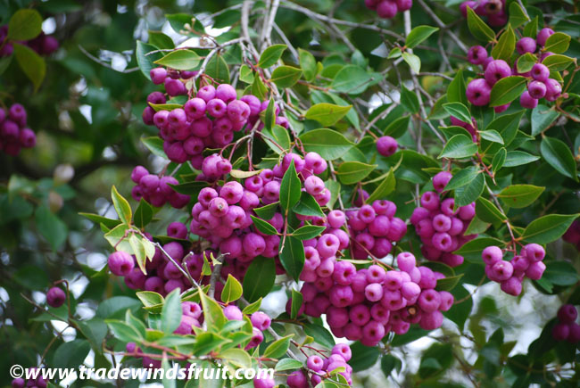 میوه های این گیاه که توتی شکل بوده و رنگی بین سفید تا ارغوانی دارند در تابستان بر روی درخت ظاهر میشوند.