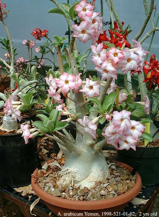 گیاه آدنیوم به صورت بوته ای میباشد و مناسب برای کاشت در باغها، نگهداری در منزل و نگهداری در گلدان به شکل بنسای میباشد.