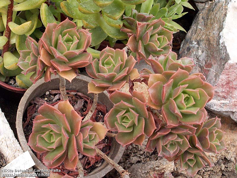 این گیاه همیشه سبز از جنس Aeonium میباشد ، این جنس شامل 35 گونه متفاوت میباشد .