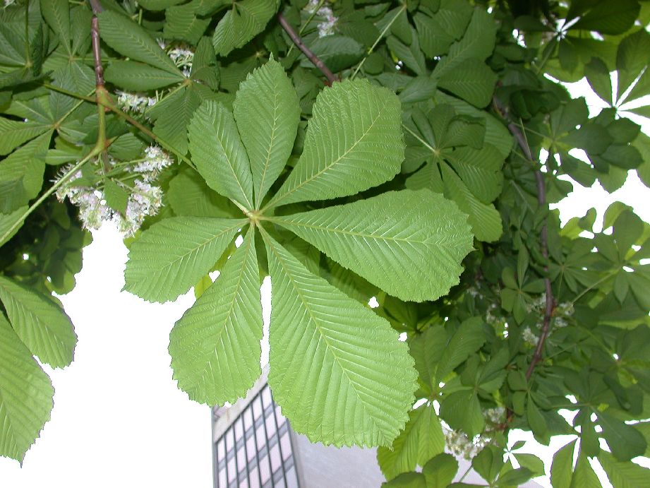 برگهای این درخت مرکب پنجه ای و متقابل است و هر برگ دارای 5-7 برگچه است.هر برگچه 13-30 سانتی متر طول دارد که تقریبا کل برگ را تا 60 سانتی متر می رساند.طول دمبرگ ها7-20 سانتی متر است.