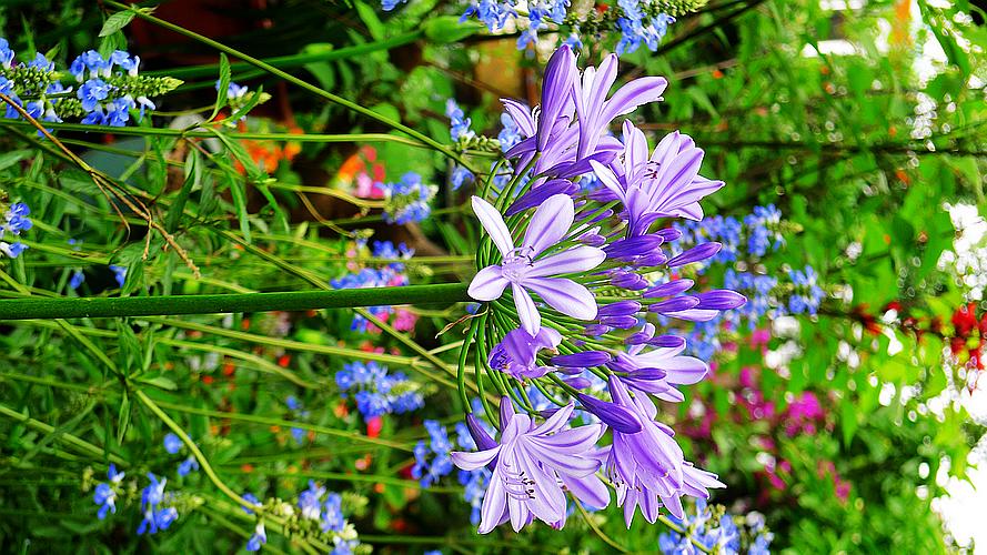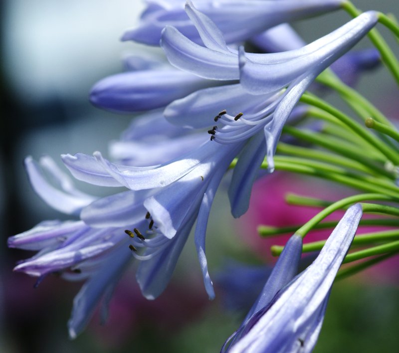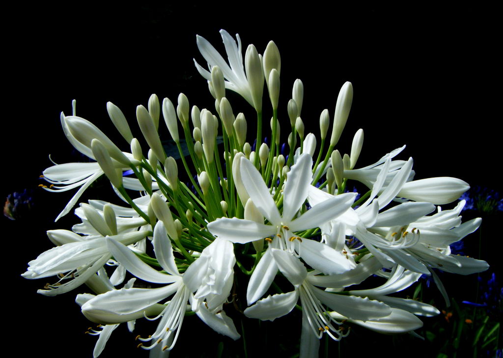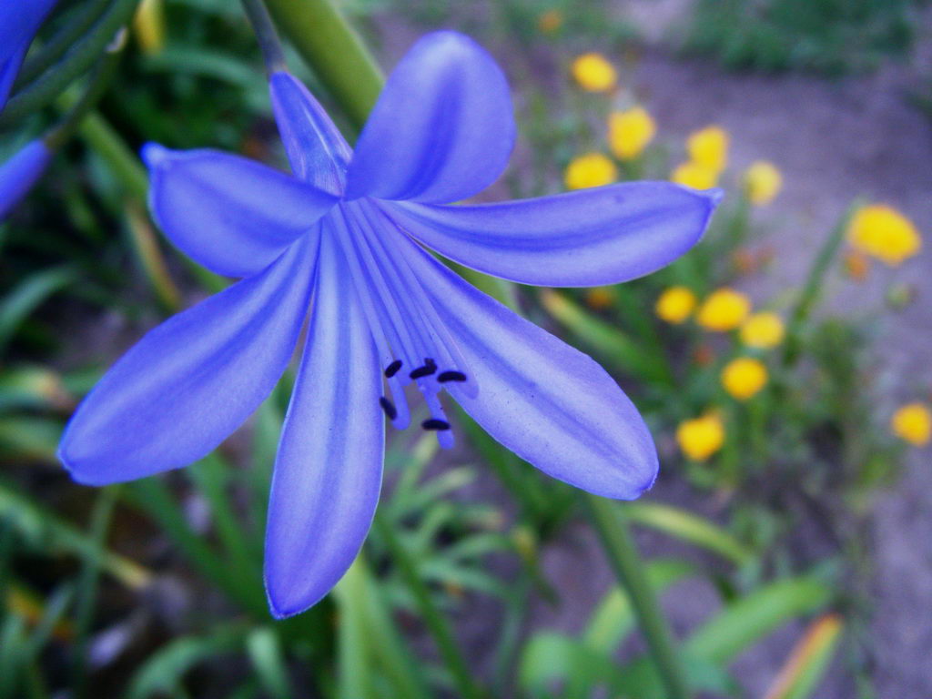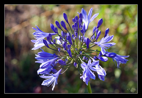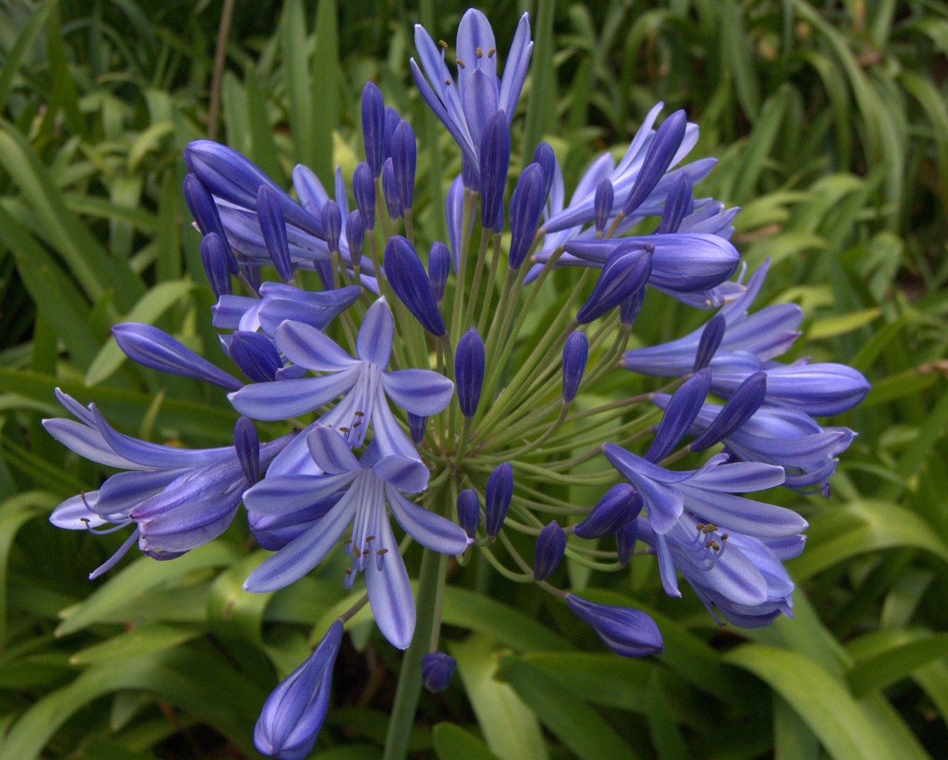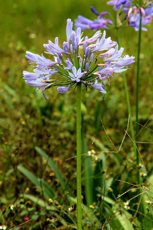 اين گياه دائمي بومي كاپ ( آفريقاي جنوبي ) است . برگهاي آن بشكل روبان و بطول ۵۰ سانتيمتر است . رنگ آن سبز شفاف است و قسمت زيادي از سال را باقي مي ماند ( ازخرداد تا مرداد ماه ) از ميان برگها ساقه گل دهنده اي بطول تقريبي ۷۵ سانتيمتر بيرون مي آيد كه در انتهاي آن گل آذيني بشكل چتر و حدود ۵۰ عدد گل بشكل نرگس و برنگ آبي و يا آبي مايل به بنفش قرار دارد و يكي از گلهاي آبي رنگ نادر در فصل تابستان است .
