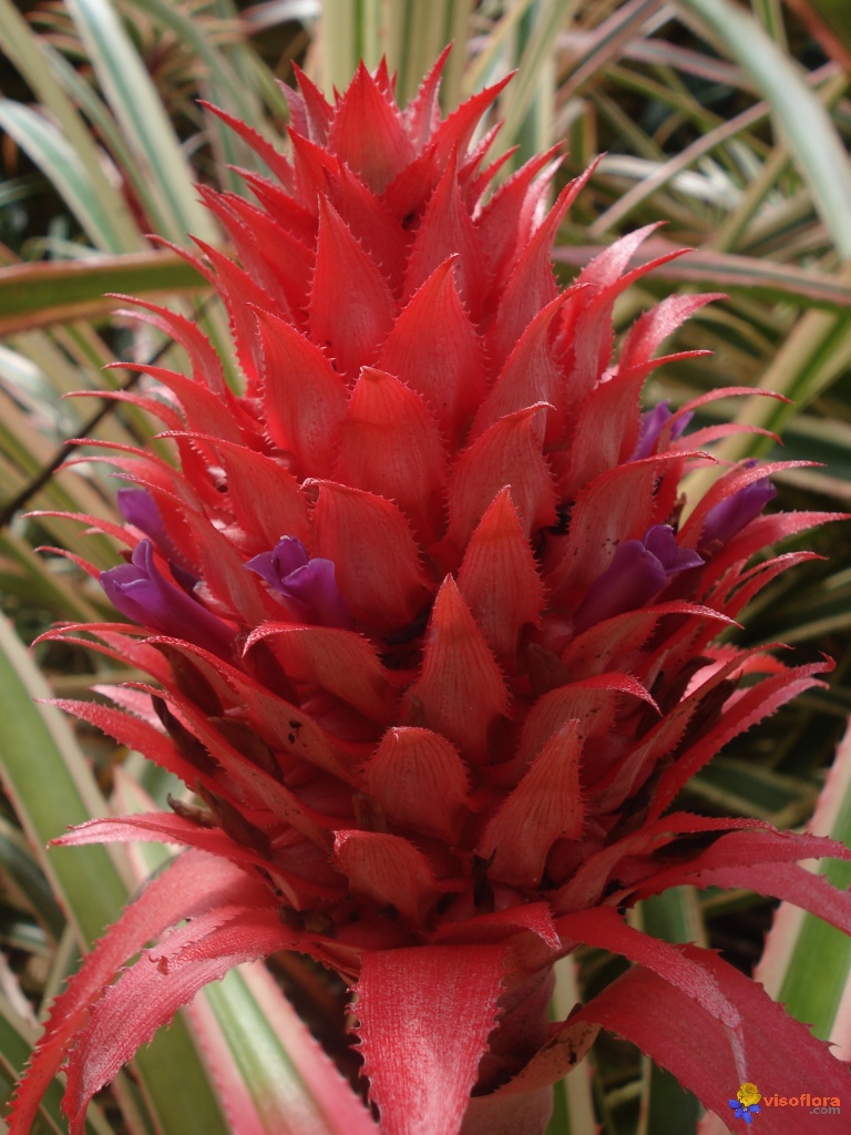 اسم علمی آناناس Ananas comosus و از خانواده Variegatus میباشد. آناناس گیاهی است بومی برزیل و کلمبیا برگهای آن چرمی بلند و نیزه ای با نوارهای طولی کرم و سفید رنگ در لبه است حاشیه برگها خصوص با خارهای قرمز رنگ می باشد