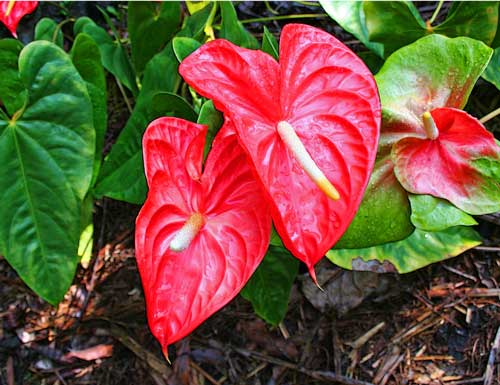 آنتوریوم گیاهی است بومی گواتمالا و کوشاریکا این گیاه مانند ساقه اصلی بوده و ارتفاع آن به بیش از ۳۰ تا ۴۰ سانتیمتر می رسد، دارای برگهای کمی پهن، سبز تیره و به طول بیش از ۱۸ سانتیمتر می باشد گلها با اسپات قرمز، صورتی، زرد و یا سفید در اواخر بهار یا فصل تابستان ظاهر می شوند