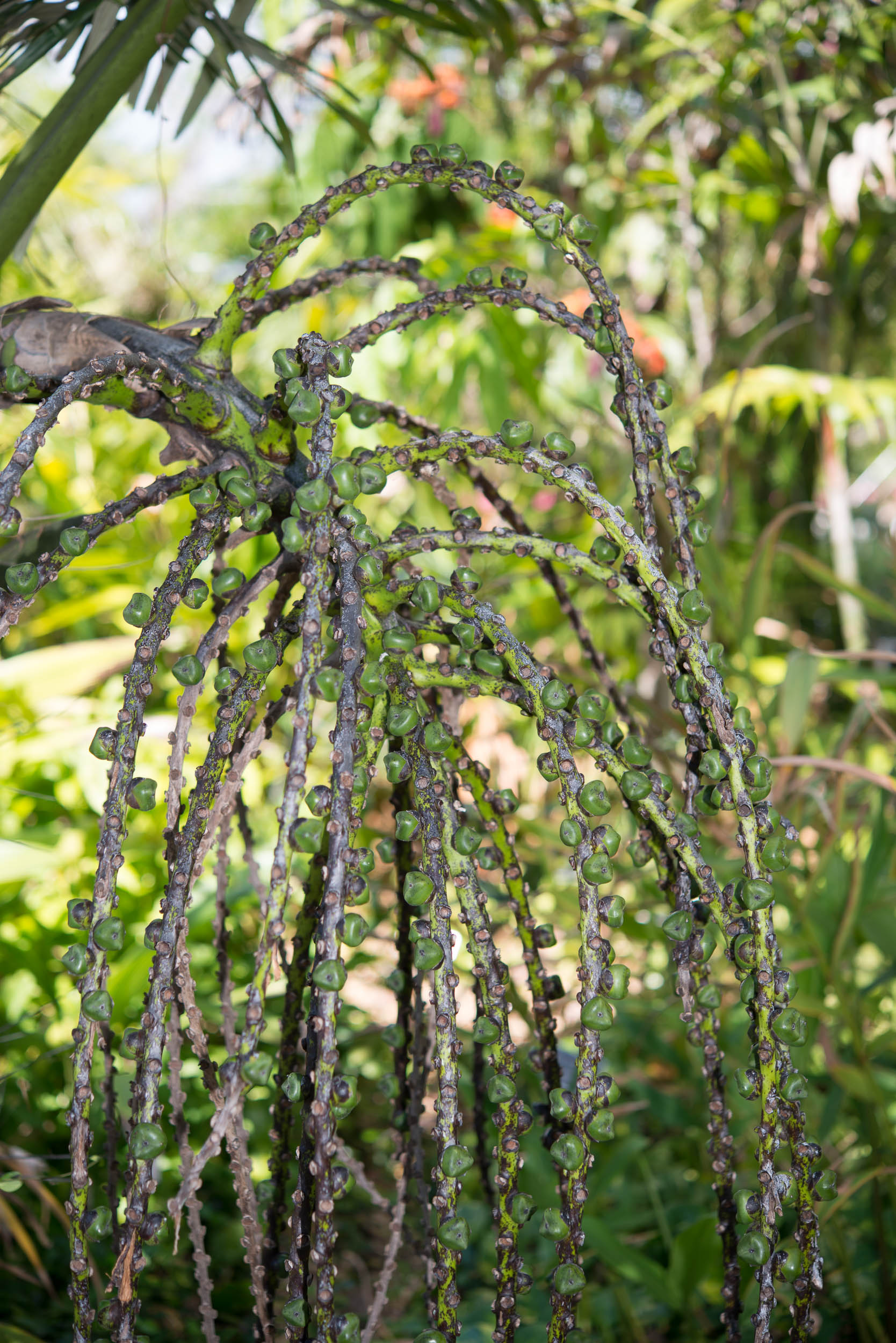 گلآذینها بزرگ، آویخته و منشعب هستند و از بخش بالایی تنه یا زیر تاج برگها خارج میشوند. اسپَدیكسها گوشتدار و به رنگ زرد مایل به سبز تا قهوهای مایل به زرد دیده میشوند. گلها تکجنس و روی یک پایه قرار دارند (نخلی یکپایه)؛ گلهای نر کوچکتر و متراکمتر و گلهای ماده درشتتر و فاصلهدارتر هستند. گلبرگها ضخیم، مومی و اغلب به رنگ کرم تا زرد کمرنگاند.
