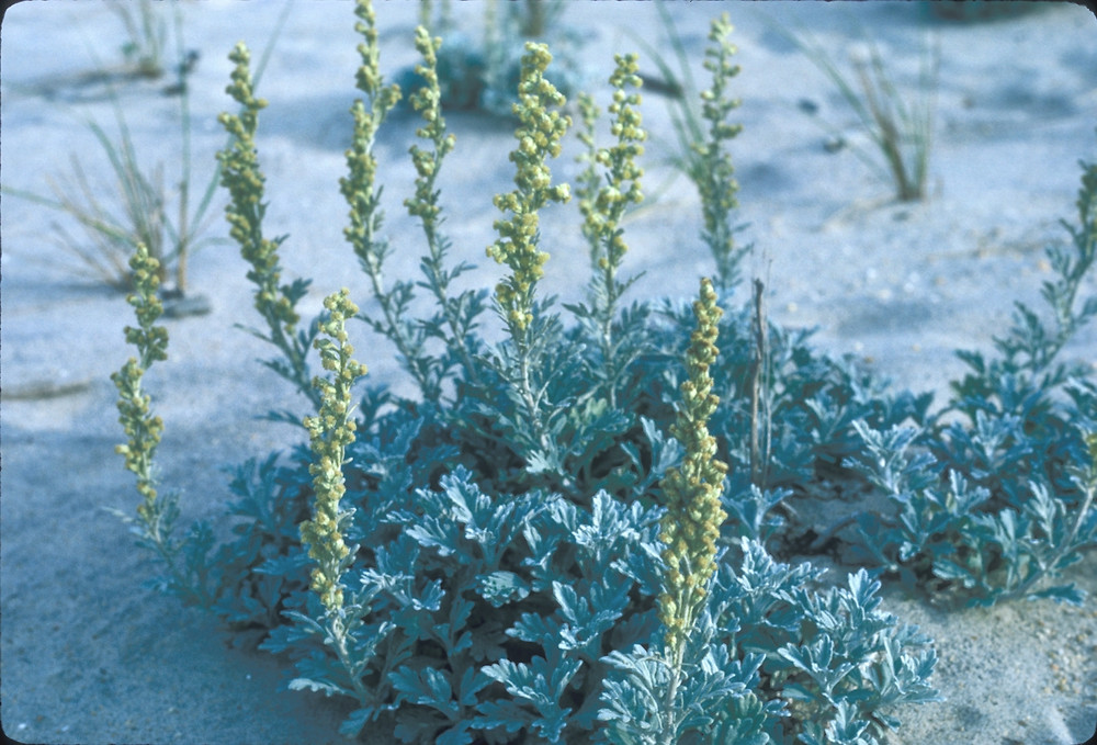 گیاه "افسنطین شنی" یا "افسنطین خاکستری" گیاهی است از خانواده ی گل ستاره ای ها که بومی شرق آسیا (ژاپن، چین، روسیه) می باشد. این گیاه همچنین به صورت خودرو و به عنوان گیاهی زینتی در شمال آمریکا و در زمین های شنی مانند اسکاندیناوی به خوبی پرورش می یابد. افسنطین شنی گیاهی همیشه سبز و چندساله است که می تواند حدود 0.5 تا 0.6 متر طول داشته و سرعت رشد متوسطی داشته باشد. برگ های آن به رنگ سبز کمرنگ با سطحی پوشیده از کرک های انبوه می باشد. گل ها به رنگ زرد بوده که به صورت چندتایی در خوشه های طویل ظاهر می شوند. این گل ها از ماه های جولای تا اواخر آگست تشکیل می شوند. بذرها نیز از آگست تا اکتبر می رسند. گل های این گیاهان هرمافرودیت (دارای اندام های جنسی نر و ماده بر روی یک گل) بوده و گرده افشانی آنها توسط حشرات صورت می گیرد. از این گیاه به عنوان گیاهی پوششی نیز استفاده می شود.