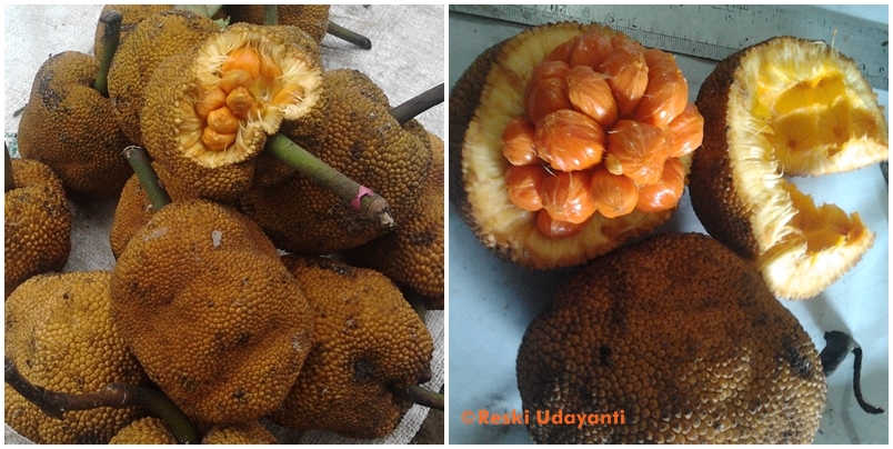 میوه ها به قطر 8 تا 12 سانتیمتر، دارای خارها یا اندام های زگیل مانند فراوان، به رنگ مایل به زرد، دارای گوشتی نارنجی رنگ و تعدادی بذر می باشند.